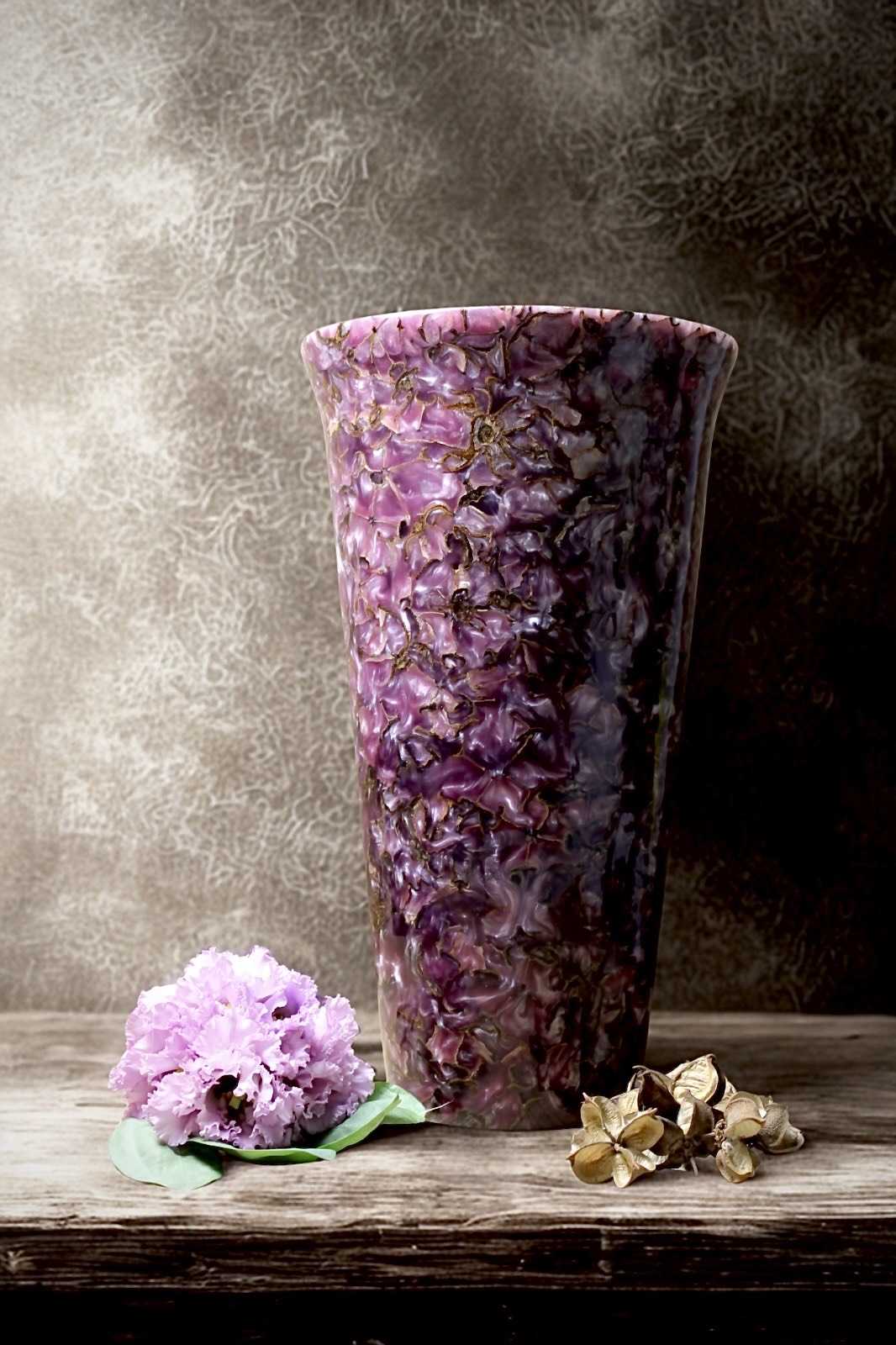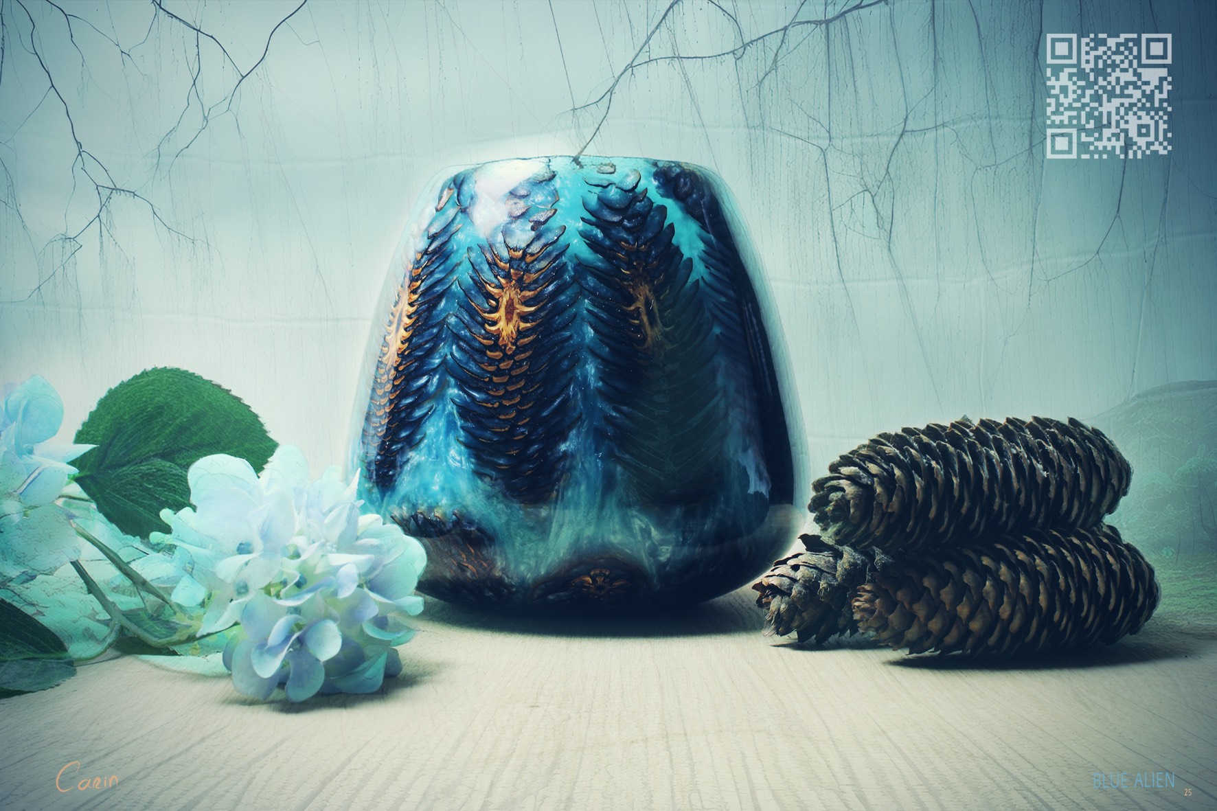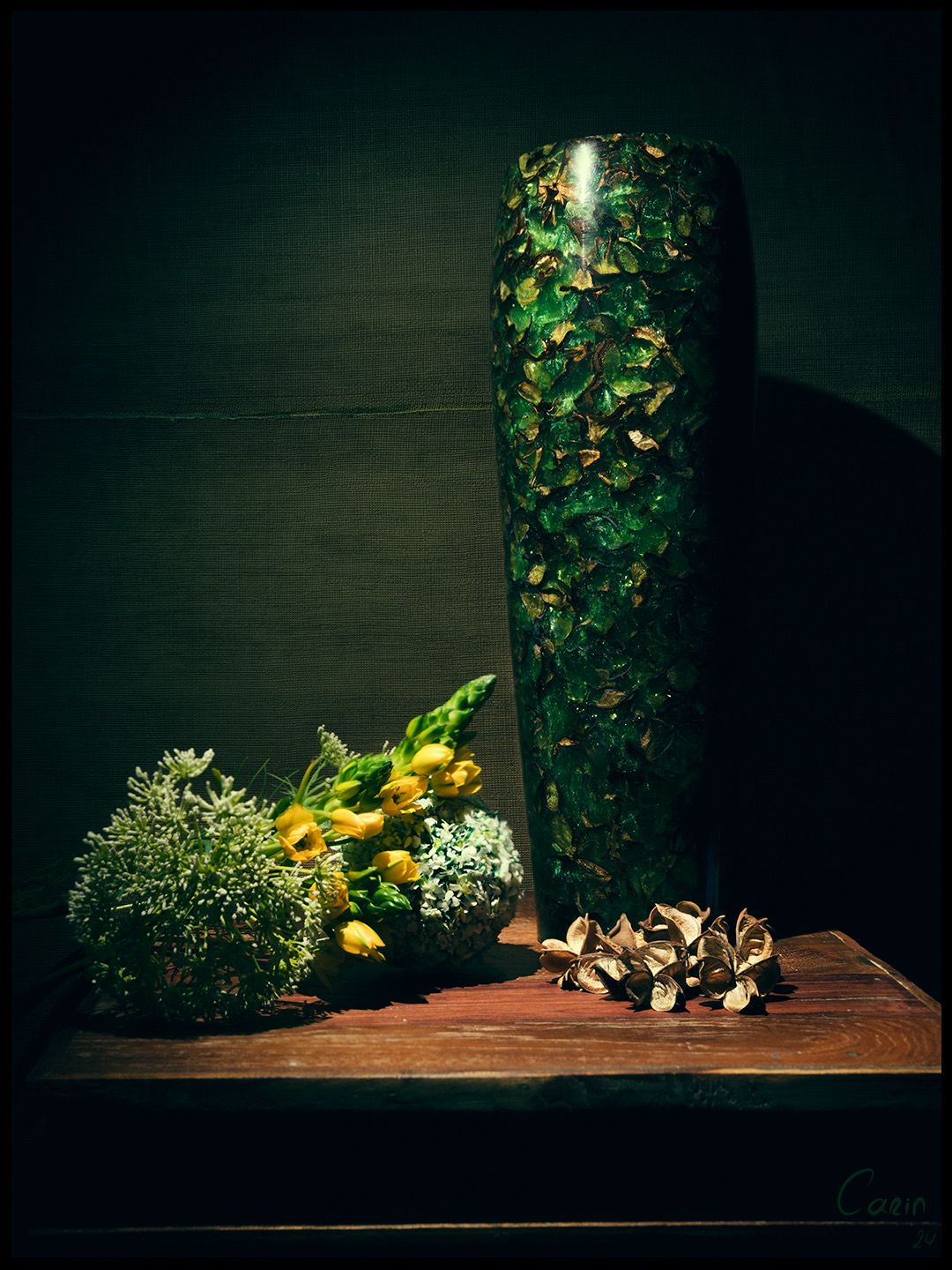 Vase with Banksia in it. Banksia comes from an Australian plant.