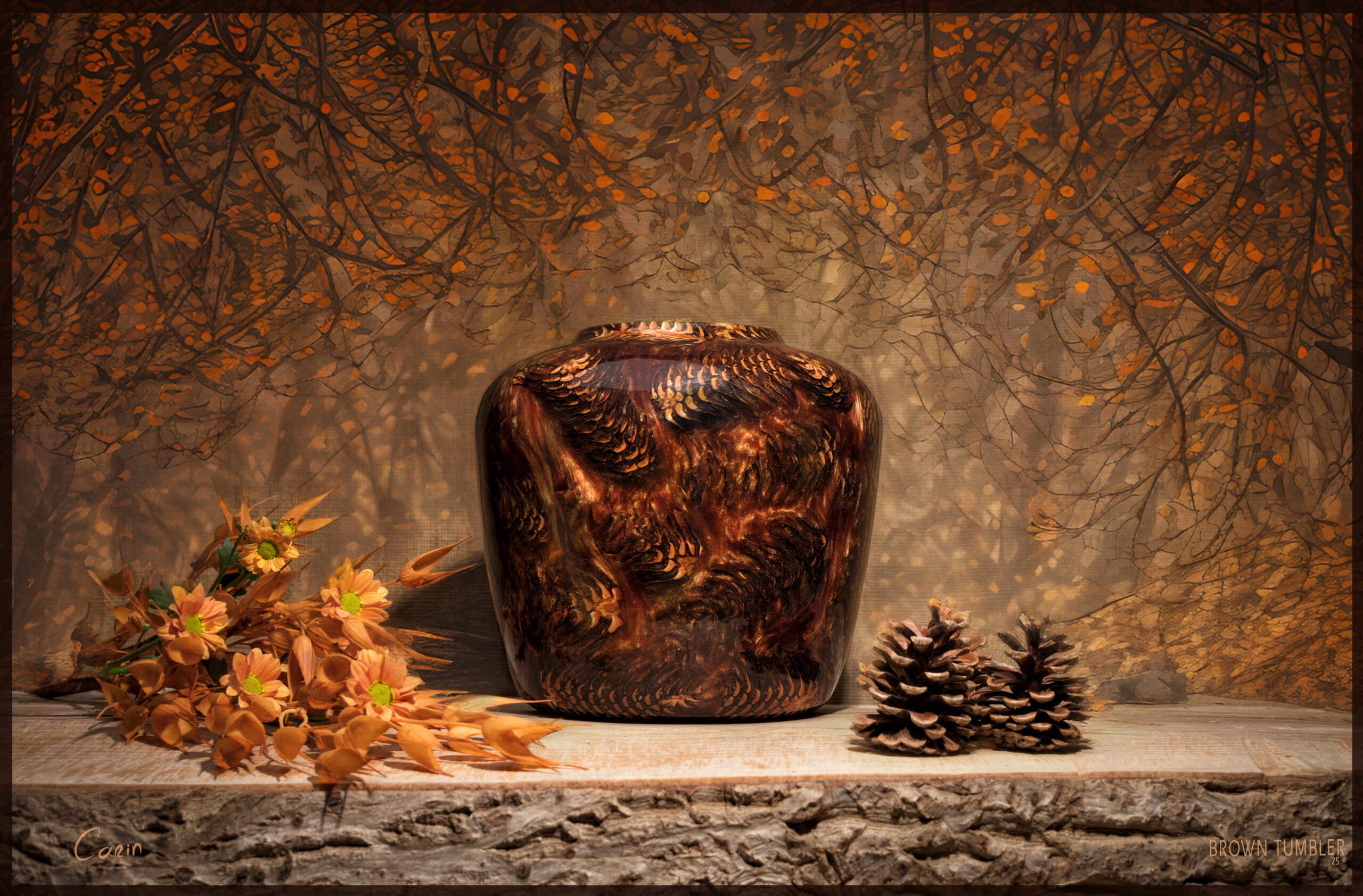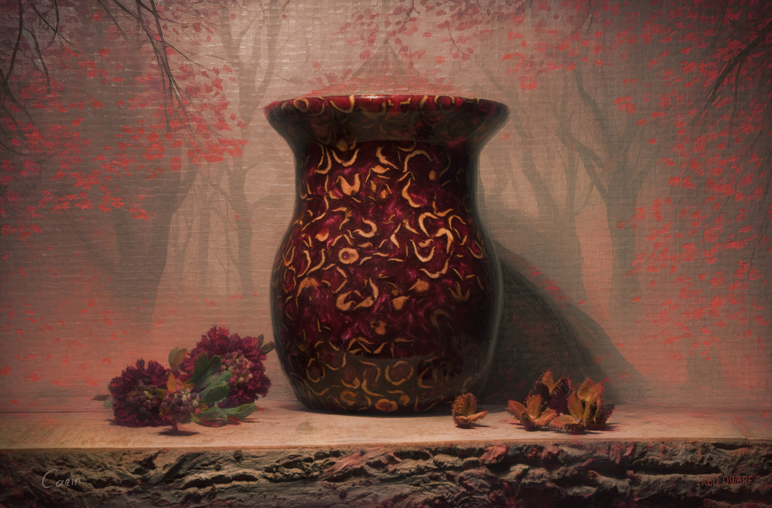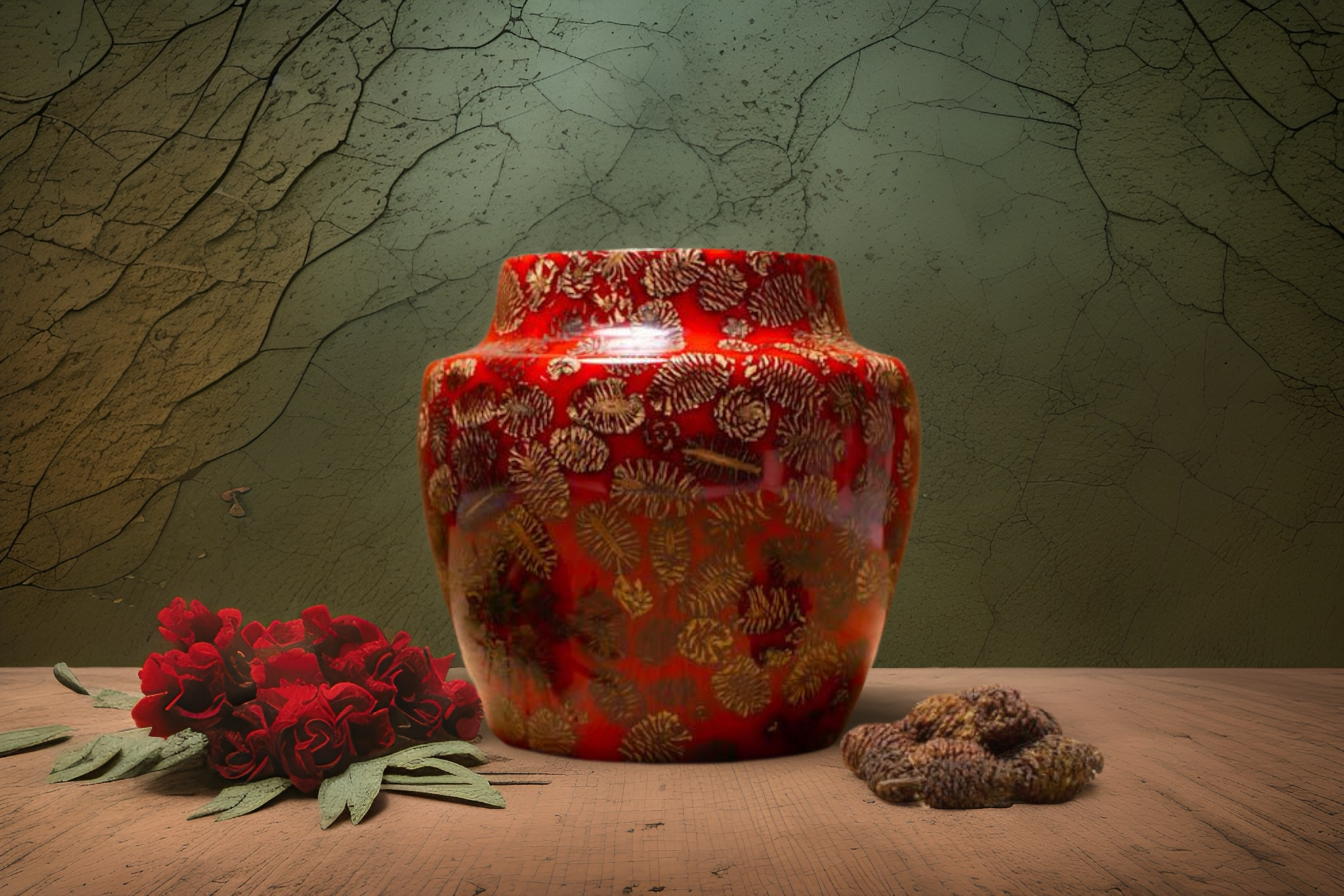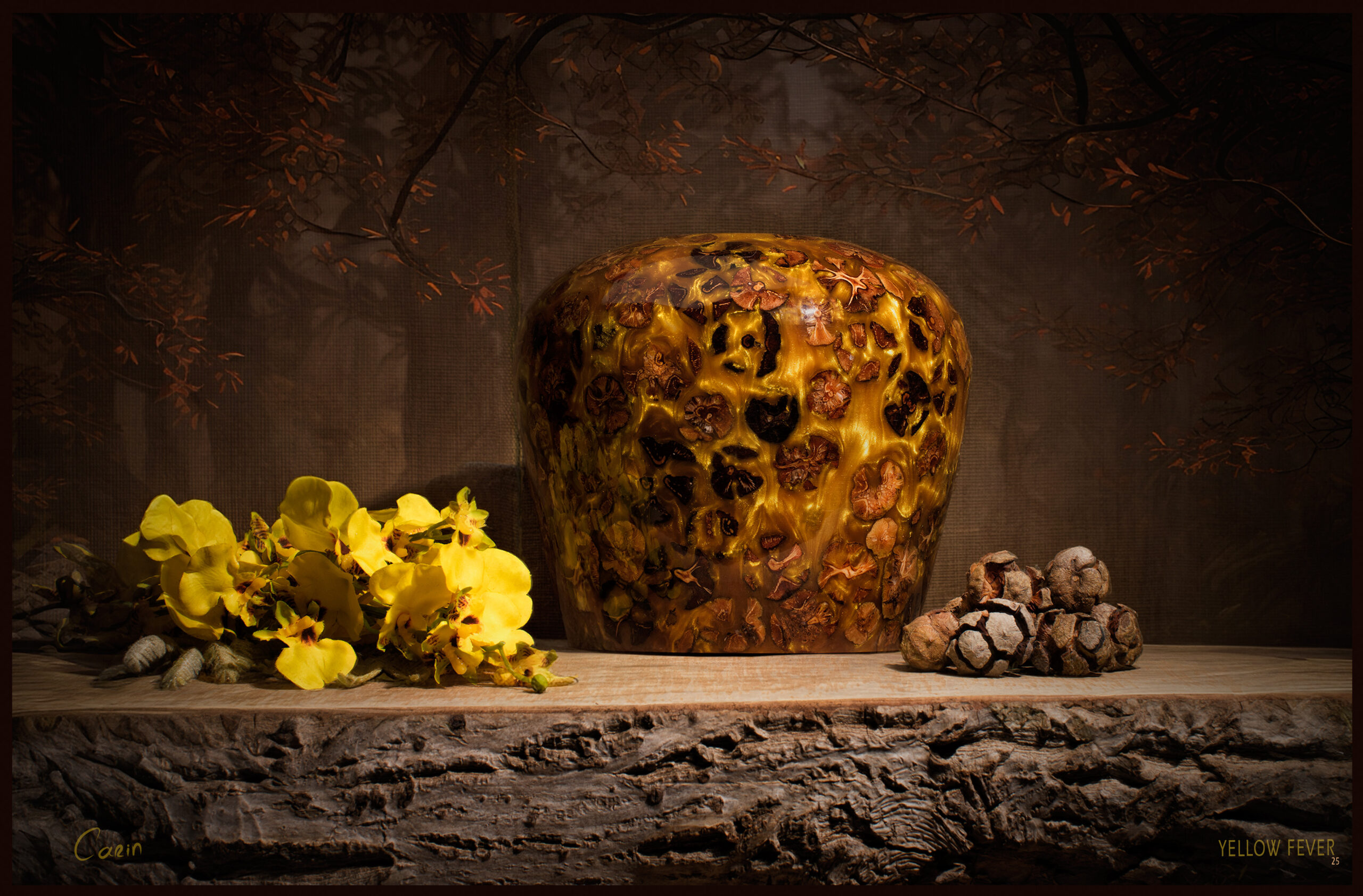 Vase with Banksia in it. Banksia comes from an Australian plant.
